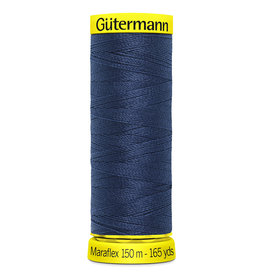 Maraflex heeft een dikte van 120 en op een klosje garen zit 150m. Gebruik het garen op de boven- en onderdraad zodat de naad optimaal kan uitrekken.